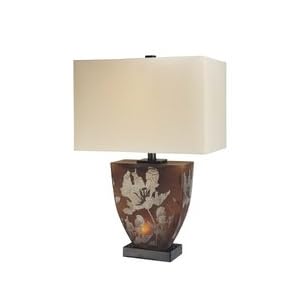 Featuring a U-shaped body with a built-in night light, this Ambience Collection table lamp is a convenient and stylish addition to any decor. Perfect for a bedroom, guestroom or anywhere else a night light might be useful. The Amber glass body features an organic floral motif and is complemented by a simple off-white fabric shade. From the Ambience lighting collection by Minka-Lavery.